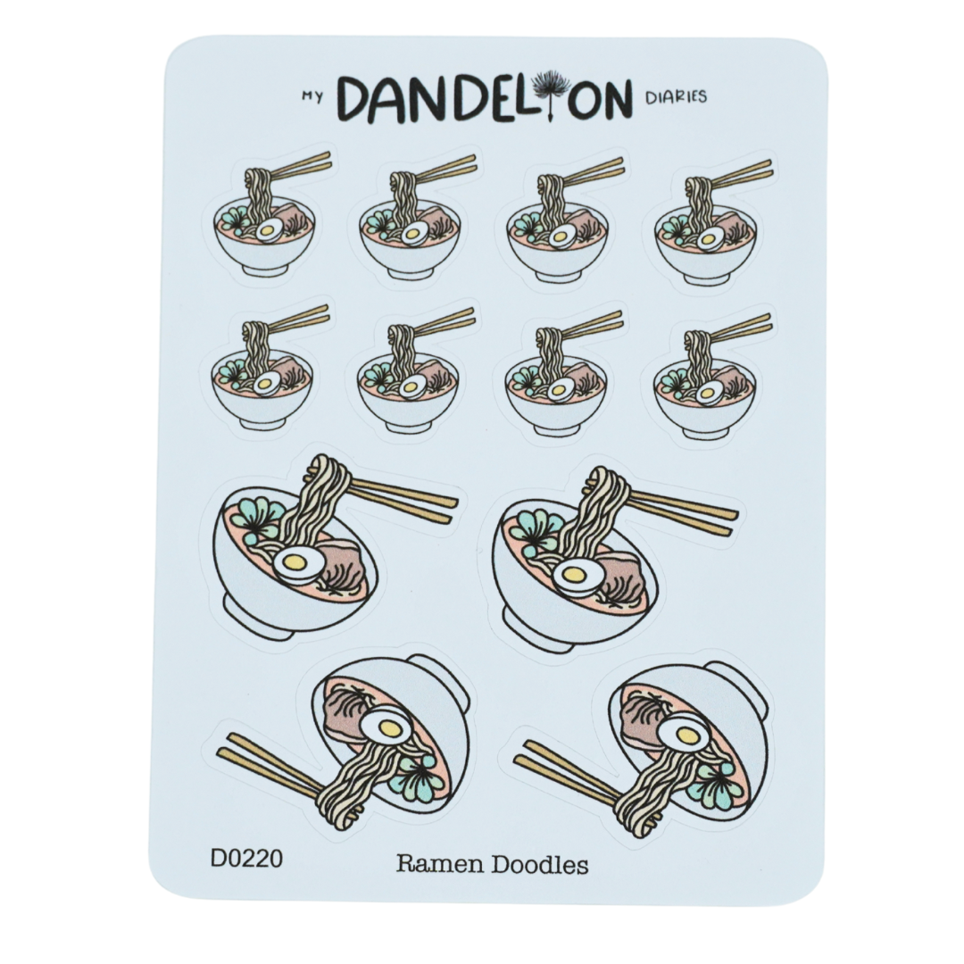 Large and small ramen bowls with chopsticks and all the toppings! Great for marking ramen adventures, or having a bowl at home.